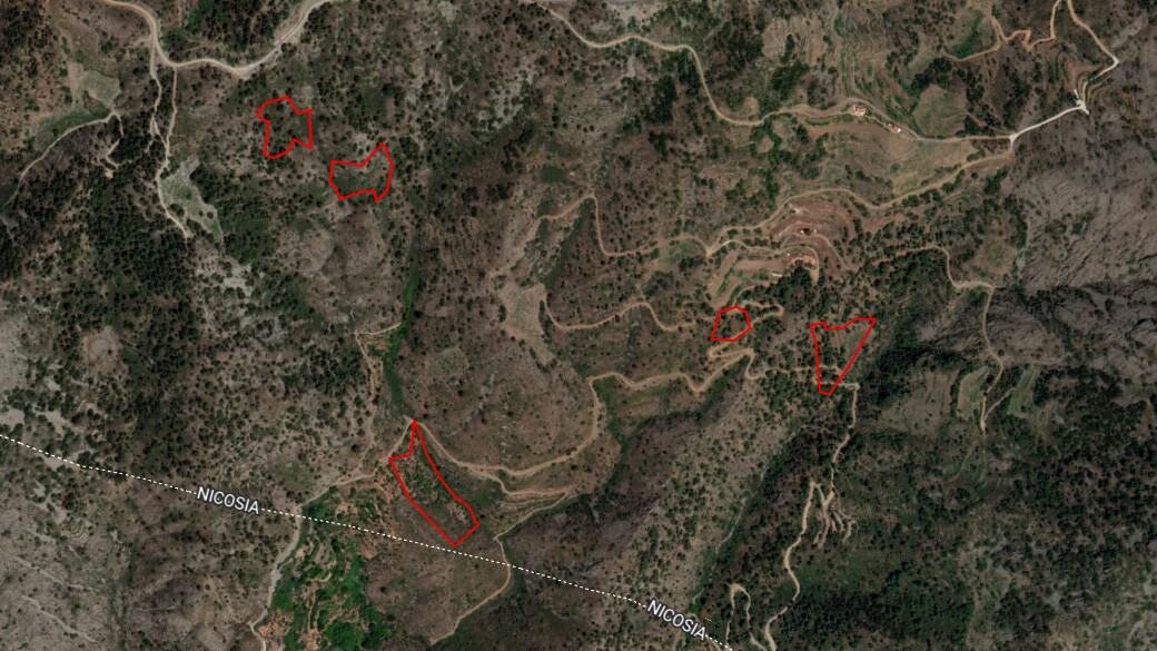 Five fields in Sykopetra, Limassol. The asset consists of five fields in Sykopetra. They are located 1km from the community's center and 3km from Odou. The fields have a total area of 25,559sqm and fall within the NATURA Zone.