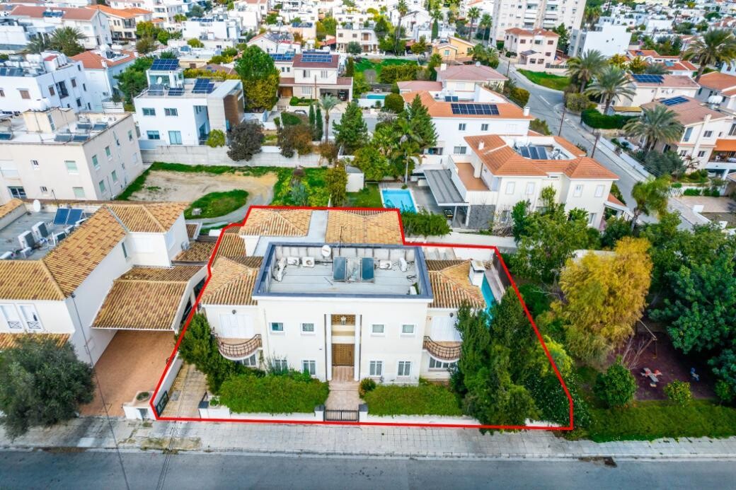 5 bedroom house in Platy Aglantzias, Nicosia. The property is a spacious 5 bedroom detached house with a swimming pool in Aglantzia. It is located few steps away from Athalassa National Forest Park and 550m from RIK avenue. The house has a covered area of 375sqm, 10sqm covered verandas, 6sqm uncovered verandas and 18sqm basement area. It also benefits from a covered parking area of 43sqm. The ground floor of the house consists of a living room, dining room, office space, kitchen with an extra dining room, and a guests toilet. The first floor consists of five bedrooms, one bathroom and two uncovered verandas. The property is built within a plot with an area of 550sqm. The property offers close proximity to all amenities and easy access to Nicosia's city center and the highway.