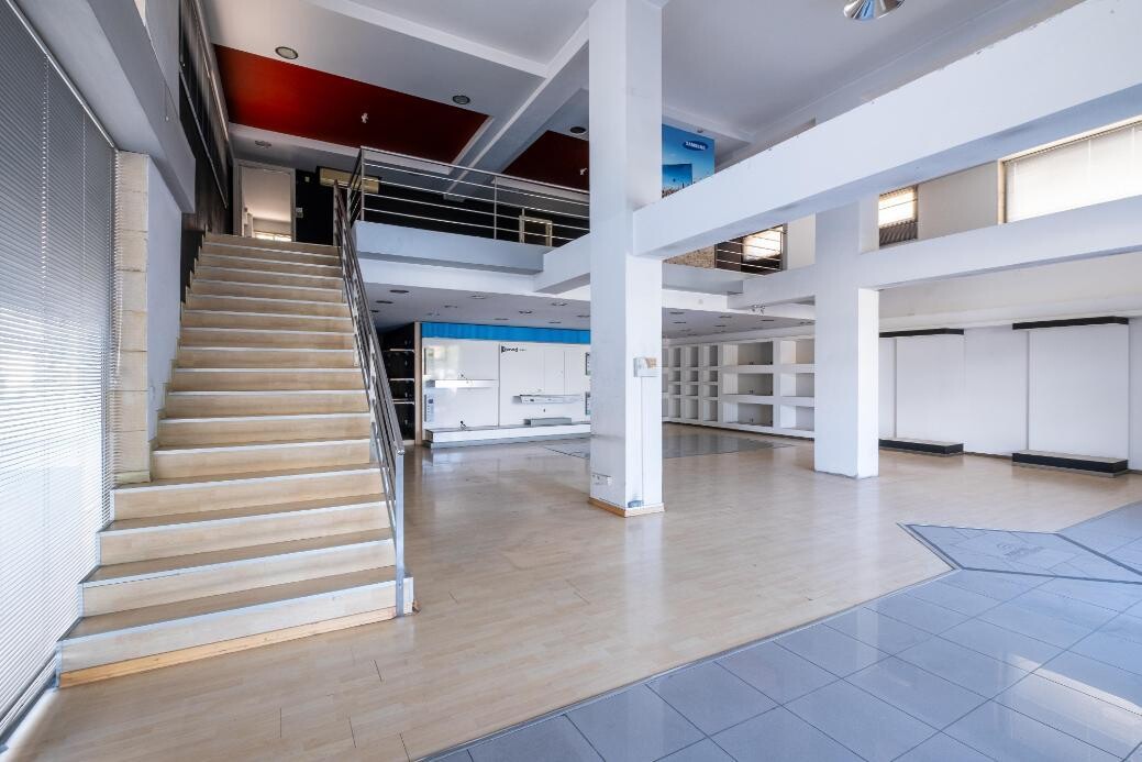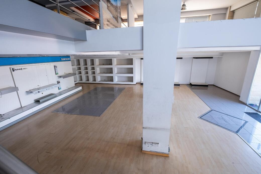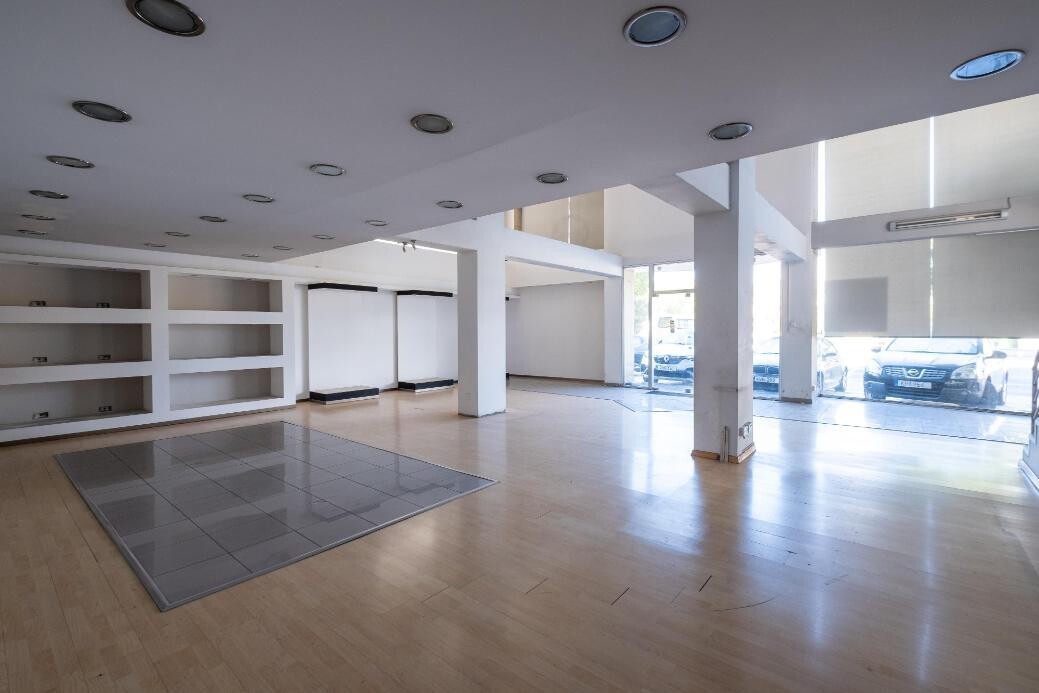 Shop with mezzanine in Agios Antonios, Nicosia. The property is a ground floor shop in Agios Antonios. It is part of a mixed-use building located on Salaminos avenue, opposite 'Kolokasi' parking lot. It has an internal area of 156sqm, a mezzanine of 85sqm, 2sqm covered verandas and 2sqm uncovered verandas. It consists of an open plan area, whereas the mezzanine has 2 toilets and storage space. It has the right of use to a 53sqm storage on the basement. The property has the exclusive right to use 5 parking places (3 ground floor parking spaces and 2 basement parking spaces). It offers close proximity to all amenities and easy access to Nicosia's city center.
