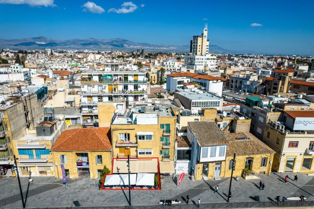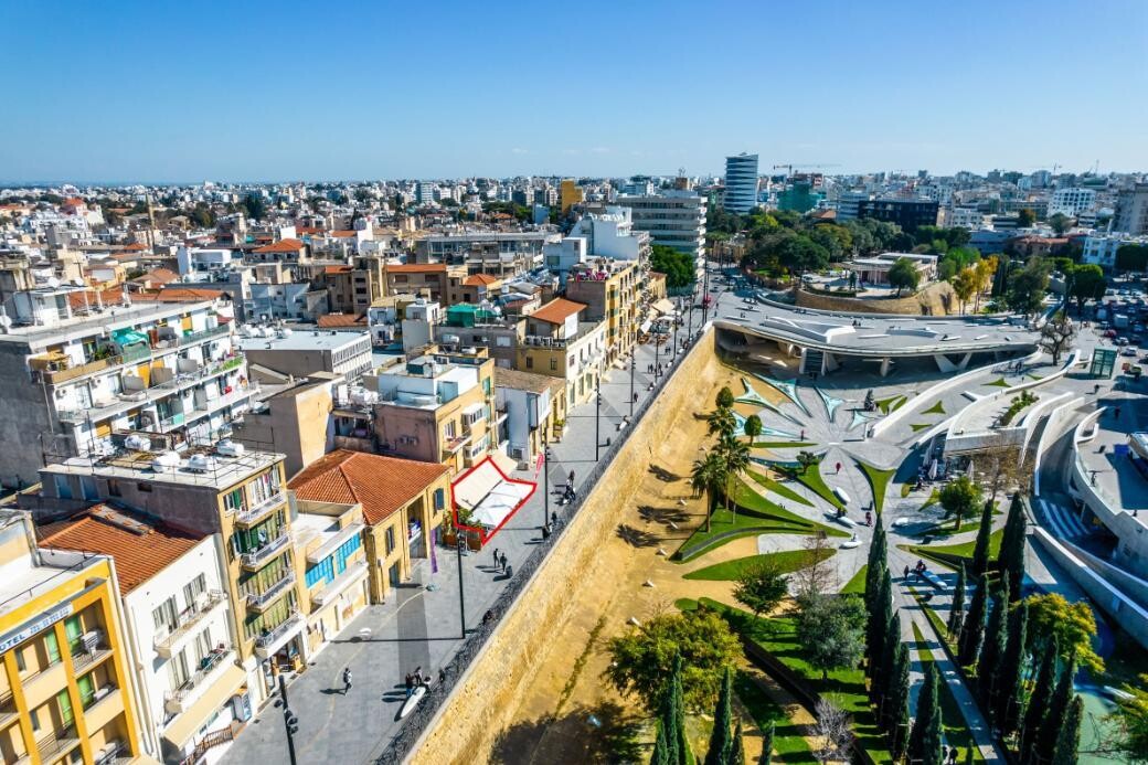 Shop on Eleftherias Square, Nicosia. The property is a vacant shop (no. 1) in Nicosia Old Town. It is located on Kostaki Pantelide pedestrian street, a few steps away from the famous Eleftherias Square and Ledras street. The shop has a covered area of 115sqm and a frontage of 20m. The shop is part of a three-storey building consisting of three shops and three apartments. The property has a prominent location in the historic centre of Nicosia surrounded by hotels, retail shops, restaurants, apartments, offices and amenities.