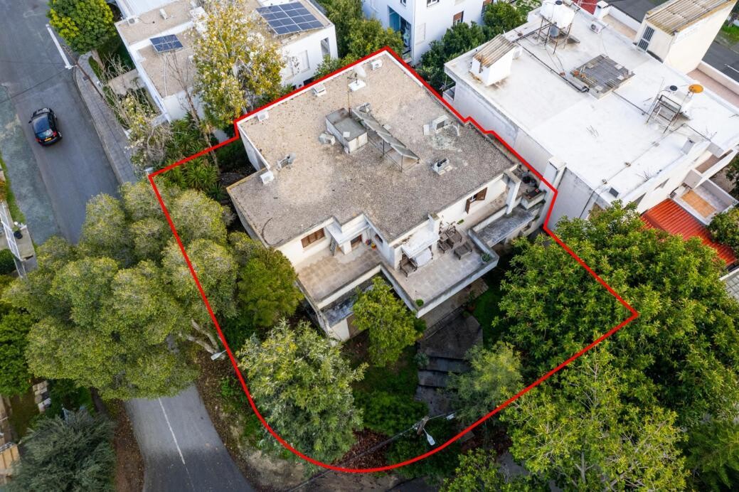 Two-storey house in Kaimakli, Nicosia. The property is a semi-detached house in a 50% shared land, in Kaimakli. It is located 150m from Frederick University and 170m from Archbishop Makariou III Avenue. It has a covered area of 313sqm, 5sqm covered verandas and 189sqm of basement. The plot has a land area of 505sqm. The ground floor consists of a hall, living room with fireplace, an open plan living and dining area, office space, separate kitchen with extra dining room, laundry room and a guest WC. The first floor consists of four bedrooms, one of which is en-suite, a laundry room, one bathroom and an uncovered veranda. The basement consists of parking spaces and an extra large room. Sale will be executed through a Sales Purchase Agreement.