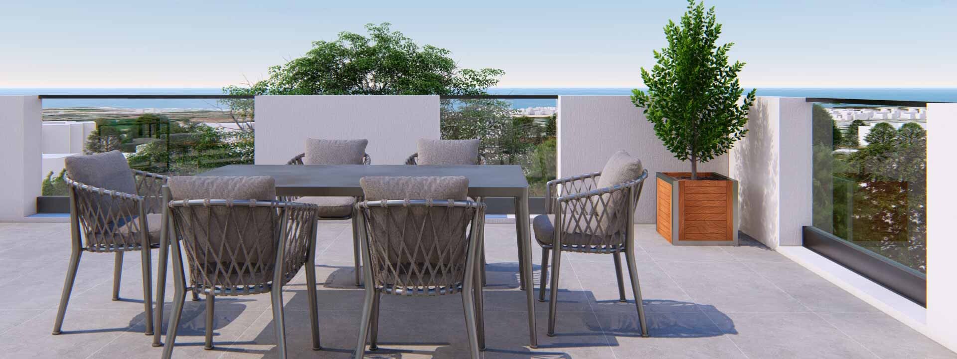 Serenity Court consists of three spacious three bedroom apartments each one on its own floor. Each apartment enjoys an open plan kitchen area connected with a spacious living and dining area that have access to a covered veranda. The penthouse apartment comes with its own access to a rooftop garden. The central location of the of the development offers unique access to all amenities and services, blue flag beaches, hotels, resorts, international golf courses, entertainment venues and shopping malls. The location of Serenity Court will give future residents easy access to the Paphos International Airport and the Paphos to Limassol Highway.