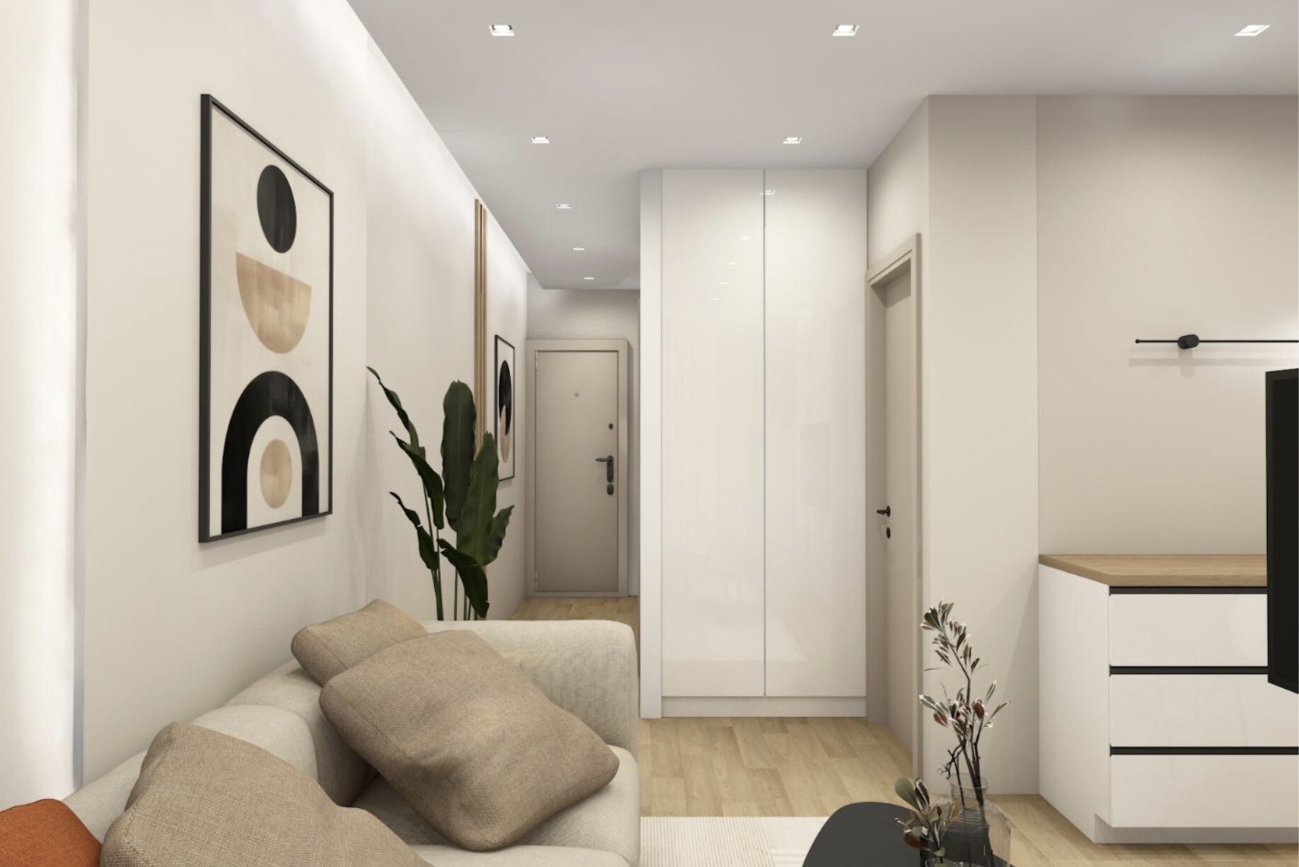 - Separate bright bedroom with elegant finishes
