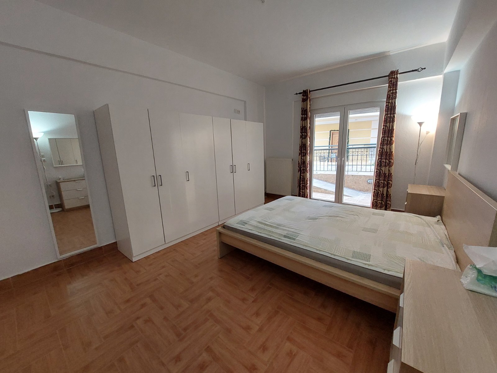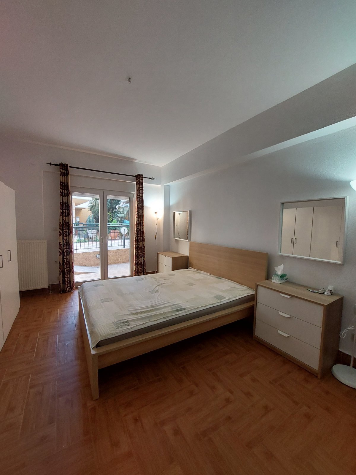 Te huur appartement van 150 m² in Thessaloniki. Het appartement is gelegen op de begane grond verdieping en bestaat uit: 2 slaapkamers, woonkamer met keuken, een badkamer, een doucheruimte, een voorraadkast.