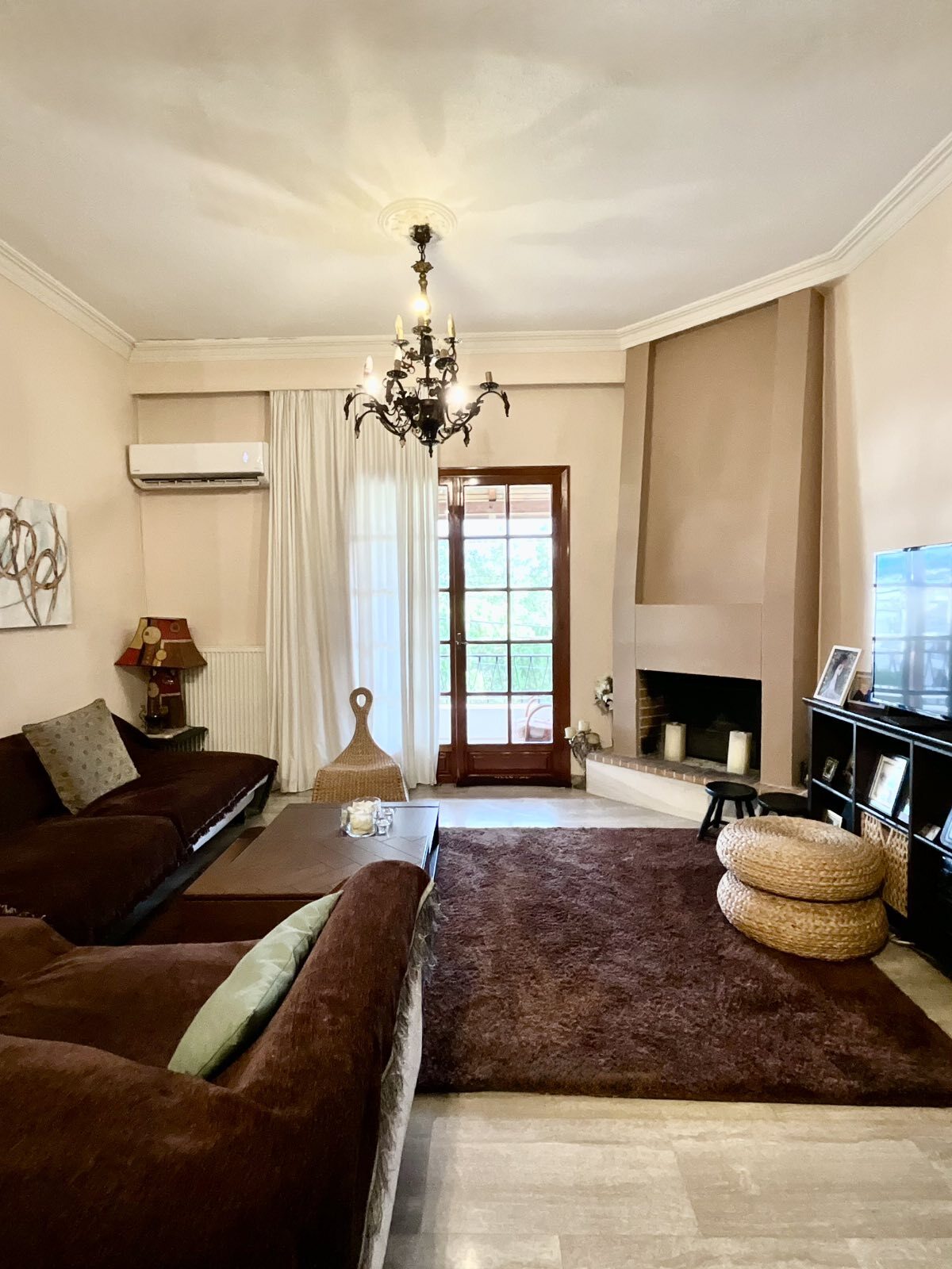 A spacious living room with fireplace