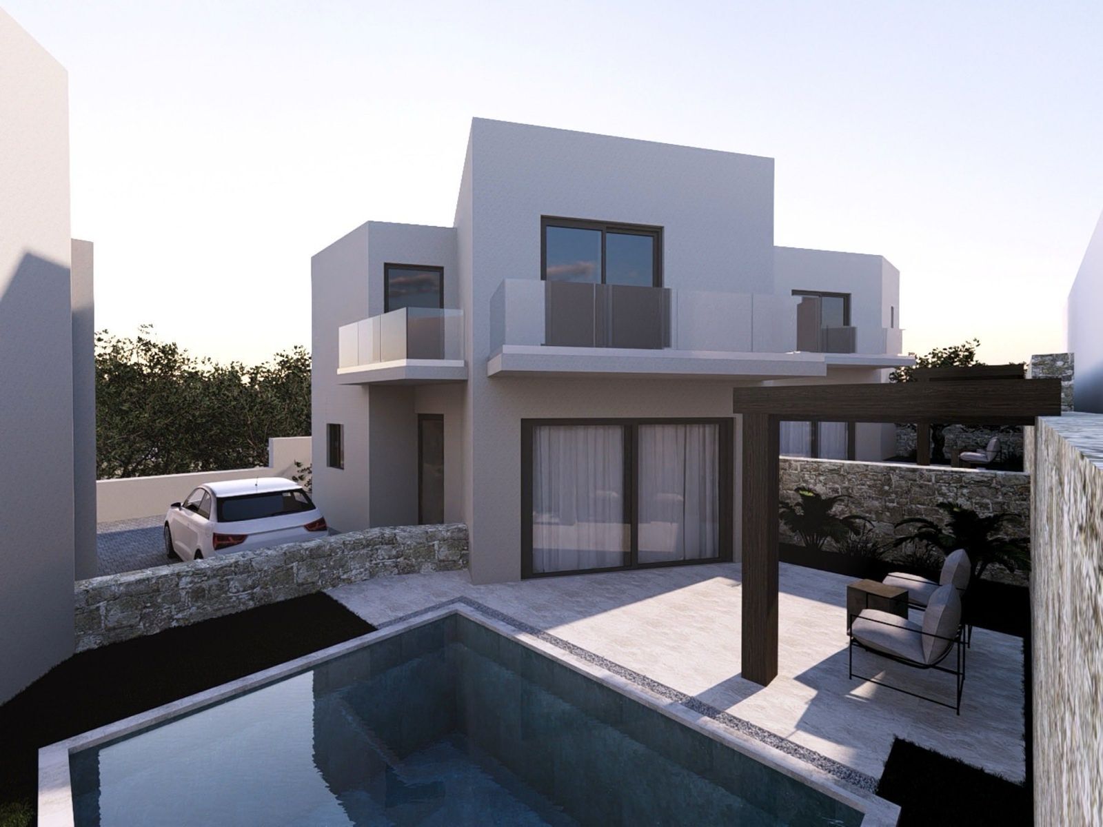 For sale: a modern 80 sq.m. villa, part of a small, luxurious complex of 3 villas in Analipsi, Heraklion, Crete, designed to combine elegance, comfort, and functionality. The property offers: