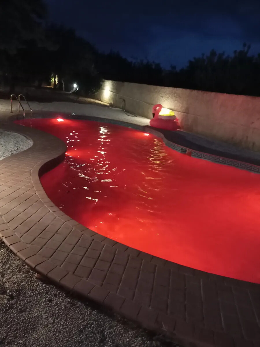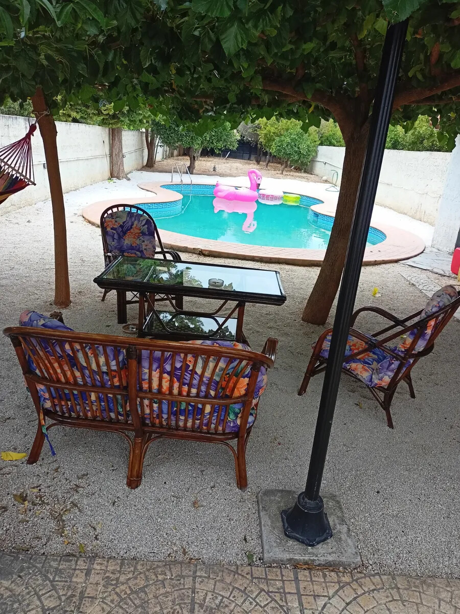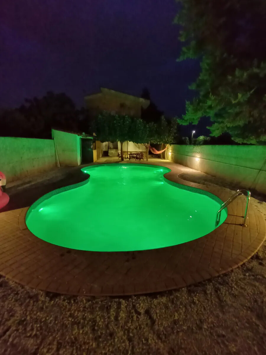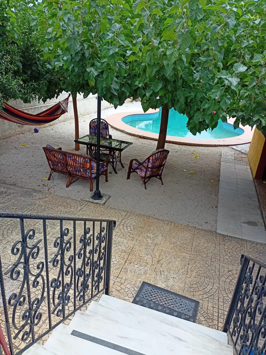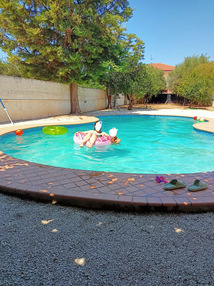 The ground floor includes a bright living room with a fireplace, a fully equipped open-plan kitchen, and a guest WC. Direct access to the garden and the large private swimming pool enhances the sense of relaxation and outdoor living.