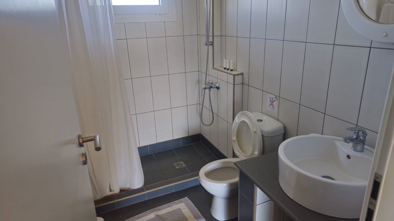 - Apartment 28 m² (1 bedroom, open-plan kitchen & living area, bathroom/shower, A/C, solar water heater)