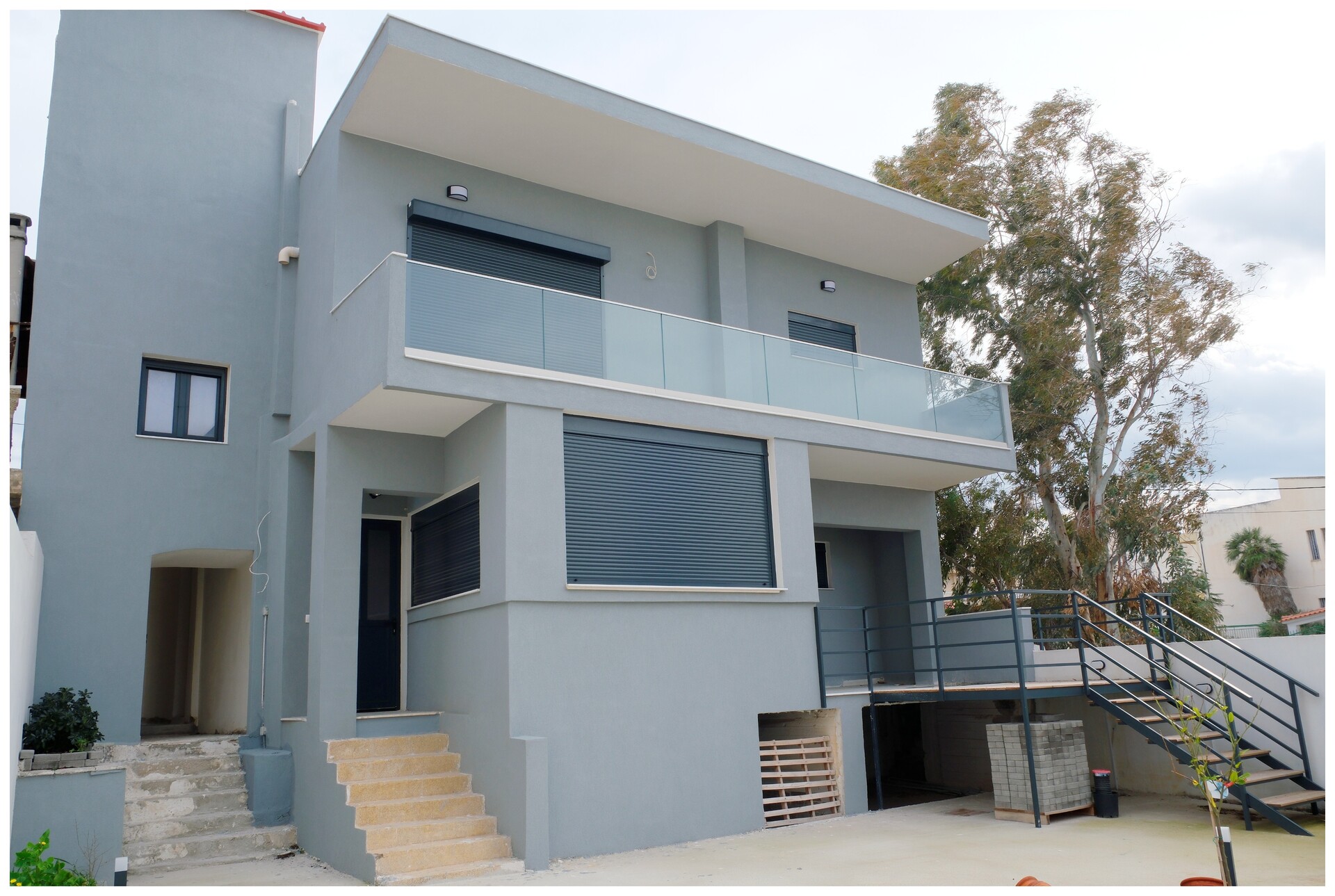 Complete renovation including marble floors, new utility lines, solar panels, architectural lighting, security wiring, full roof waterproofing, new reinforced electric shutters, and earthquake-compliant reinforced concrete construction.